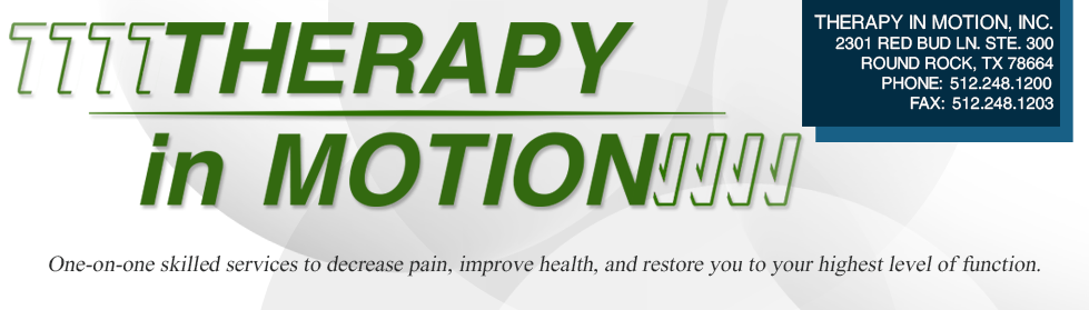 Therapy in Motion Round Rock’s mission is to provide you one-on-one skilled services to decrease pain, improve health, and restore you to your highest level of function.